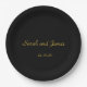 Prato De Papel Festa de casamento Dourada e preta de script elega