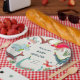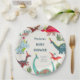 Um prato de papel de dinossauro pintado com uma mão bonita para um chá de fraldas ou uma festa de aniversário. Arte original de Caroline Bonne Müller.