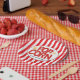 Prato De Papel Festa de Cinema Listra Vermelha e Branca de Pipoca