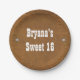 Prato De Papel Festa de Couro Marrom Rústico Ocidental e Diamante