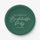 Este prato de papel de festa de despedida de solteira esmeralda sólido apresenta escrita cursiva branca clássica para uma noiva que ama o ar livre e a natureza. Celebre sua amiga com essa cor profunda neste enfeite de festa de despedida de solteira chic e minimalista.
