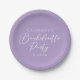 Este lindo prato de papel lilás roxo para festa de despedida de solteira apresenta letra cursiva branca clássica para uma noiva que vai ter um evento sofisticado com suas damas de honra. Decoração chic e minimalista em roxo pastel para festa de despedida de solteira.