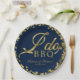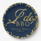 Prato De Papel Festa de Engajamento BBQ Azul Naval Dourado Confet