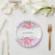 Personalize este prato de papel elegantemente desenhado com o seu próprio texto para um evento ou ocasião de festa. Este prato de papel apresenta uma flor de hibisco rosa suave aquarela com folhagem e uma rosa. Um design de prato encantador para as suas ocasiões elegantes. Este é um modelo totalmente personalizável.