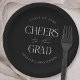 Elevem sua festa de formando com nossos pratos personalizados do partido "Saúde ao Formando". Apresentando um clássico design preto e branco com tipografia moderna e talento minimalista, essas placas são personalizáveis — adicione seu ano de graduação e o nome do formando para criar uma manutenção exclusiva para seu dia especial. © Kimbellish, LLC