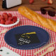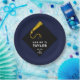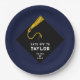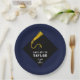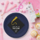 Placas de festa de formatura criativas com boné preto e design de aço dourado sobre fundo azul marinho. Edite texto para adicionar seu nome de formando e ano de classe de mais velho favoritos.