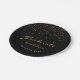 Uma celebração moderna e moderna da graduação. Um fundo preto chic com confete de ouro. O texto: Formando é escrito com um script de estilo com letras grandes. Modelo de nome e ano. Os guardanapos estão disponíveis na nossa loja.