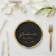 Uma celebração moderna e moderna da graduação. Um fundo preto chic com confete rosa e roxo e um quadro de ouro falso. O texto: Formando é escrito com um script de estilo com letras grandes. Modelo de nome e ano. Os guardanapos estão disponíveis na nossa loja.