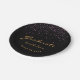 Uma celebração moderna e moderna da graduação. Um fundo preto chic com confete rosa e roxo. O texto: Formando é escrito com um script de estilo com letras grandes. Modelo de nome e ano. Os guardanapos estão disponíveis na nossa loja.