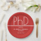 Placas de papel para uma festa de formatura de doutorado com um design vermelho e branco. Este item faz parte de uma coleção de festas de formatura que inclui um convite, anúncio de fotos, guardanapos de papel, cartões de lugar e muito mais. Personalize esses itens, adicione-os ao seu carrinho e celebre essa grande conquista.