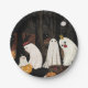 Os fantasmas bonitinhos celebram o Dia das Bruxas com fantasias, abóboras e abóboras de maçã