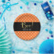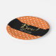 Pratos para Festa de Halloween com Pontos Orange e Branco. Personalize com qualquer texto. Itens combinando estão disponíveis.