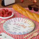 Chapas de papel da festa do arco-íris de lodo-íris. Design de festa moderna e divertida. Parte de uma coleção correspondente.