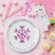 Floco de neve Placa Faux Glitter Snowflake Prata de Natal Elegante Cor-de-rosa Moderna Púrpura Mesa de Natal Púrpura Plates Faux Glitter Snowflake Plate de Festa de Natal Elegante com texto personalizado, pode alterar ou eliminar o texto
