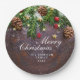 Pine Cones Branch Rustic Holiday A Placa De Papel Da Festa De Natal.