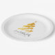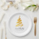 Pratos Dourados de festas de Natal em árvore. Se você estiver hospedando uma festa de feriado, este design é perfeito para todos os tipos de eventos sazonais. Projetado com um fundo branco que pode ser personalizado para a cor de sua escolha e uma árvore de Natal de folha de ouro falsa, este convite festivo para festas de férias é uma escolha excelente para sua festa. Há material adicional de festas de férias com brilho no compro Metro-Events Zazzle e Metro-Event.com.