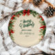 Uma design de Natal festiva, enquadrada com poinsetos vermelhos clássicos, galhos de pinheiros e verde de inverno. O estilo de vintage rústico captura o calor e a conforto da época de férias, perfeito para uma celebração tradicional de Natal.