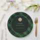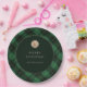 Eleve as suas reuniões de Natal com os nossos elegantes pratos personalizados de Natal Xadrez Verde. O design apresenta um padrão clássico de xadrez verde, perfeitamente complementado por uma moldura circular escura no centro. Um selo de silhueta de veado dourado adiciona um toque de sofisticação, enquanto a mensagem festiva, “Feliz Natal”, convida calorosamente o espírito da época.