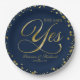 Prato De Papel Festa de Noivado Azul Naval Dourado Ela Disse Sim