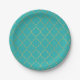 Prato De Papel Festa de Padrão Quatrefoil em Dourado e Turquesa