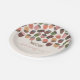 Bela festa de primeiro aniversário com tema outono modelos de pratos prontos para você personalizar! Caindo da borda superior deste design, há azeitonas pintadas à mão em belas tonalidades de rosa, marrom e verde decoradas com um design simples. Sinta-se à vontade para entrar em contato comigo com qualquer dúvida relacionada ao design!. Arte original por Caroline Bonne Müller