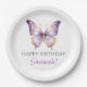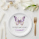 Prato De Papel Festa de primeiro aniversario de borboletas roxas