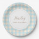 Prato De Papel Festa de xadrez gingham azul simples e elegante