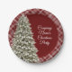 Prato De Papel Festa de Xadrez Vermelha Escura da Árvore de Natal