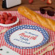 Esta design apresenta um padrão estelar simples e branco azul, um quarto feriado no dia 4 de julho, com a personalização do roteiro de caligrafia um CHURRASCO de piquenique de verão ao ar livre, um design mínimo simples e minimalista, um padrão estelar simples básico, um fornecedor de festa no quarto de julho, uma placa de papel de festa de verão, um partido de barbeque de jardim ao ar livre, uma independência bandeira americana, uma bandeira patriótica