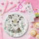 Placa de papel com tema de inverno, com uma rena adorável e folhas de verde macio. Itens correspondentes disponíveis em nossa loja!