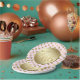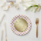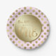 Primeiras placas de papel de festa de aniversário com belos pontos de folha de ouro e um elegante roteiro de centro de ouro em um belo fundo rosa.