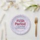 Estes pratos são perfeitos para lanches na primeira festa do seu filho ou filha adolescente. Possui uma adorável borda de produtos de menstruação como absorventes sanitários, guarnecedores de roupa, copos menstruais e tampões. Desenhado em um estilo cartoon kawaii com pequenos rostos felizes, em um esquema pastel de cor roxa e branca. A frente tem o título 'Feliz primeira festa do nosso amado______', que você pode editar para adicionar o nome da sua filha. 🩸 Para obter mais suprimentos de festas do primeiro período, visite minha loja Zazzle.com/JessicaAmberArtist 🩸 me informe sobre pedidos personalizados!