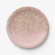 Prato De Papel Festa Glamour Rosa Bege e Brilho Dourado Rosado