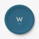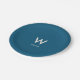 Pratos de papel para festa pessoal trendy com fundo navy, monograma grande centralizado e nome associado. Tipografia minimalista limpa e simples. Totalmente personalizável.