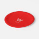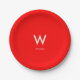 Pratos de papel para festas pessoais modernos e elegantes, com fundo vermelho, monograma centralizado grande e nome associado. Tipografia minimalista limpa e simples. Totalmente personalizável.