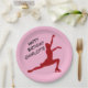 Figura Skating Birthday Pink / Red Party Plates com seu nome. A silhueta de patinagem é feita num belo brilho vermelho brilhante.