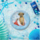 Celebrar a temporada de férias com um filhote bonito de limão Terrier sentado em um chapéu de Papai Noel no meio de flocos de neve. Feliz Howlidays!