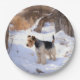 Prato De Papel Fio Fox Terrier Deixe-o nevar no Natal