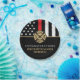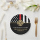This design features a firemen's flag with black and white stripes, and a thin red line stripe as well. "Congratulations" and a fireman's badge sits above the name of the graduating or retiring firefighter, lieutenant, or chief. Celebrate in style!