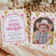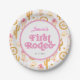 Serve up a sweet western feast with these First Rodeo Cowgirl Boots Flowers 1st Birthday Paper Plates. Featuring soft pink typography and playful illustrations of cowgirl boots, hats, and desert cacti, these plates are designed to bring a charming, baby-friendly look to your celebration. Perfectly coordinating with the rest of the collection, they offer a stylish way to tie your theme together while guests enjoy cake and treats. Customize them with your little one’s name to create a truly personalized and memorable setting for her very first rodeo.