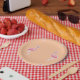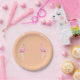 Flamingo cor-de-rosa bonito em um padrão de fundo laranja claro.