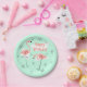 Prato De Papel Flamingos Retro Green Happy Birday