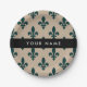 Prato De Papel Fleur de Lis, Green on Beige, Royal, Your Name