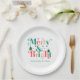 Prato De Papel Flocos de neve de feliz e pinheiro brilhante