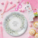 Com delicadas folhas verdes em aquarela sobre um fundo de geada de inverno, este prato de papel elegante pode ser personalizado com sua própria mensagem. Perfeito para casamentos, chá de noiva, chá de bebê, batismo, festas de noivado, celebrações de aniversário e encontros de aniversário. Desenhado por Thisisnotme©