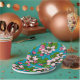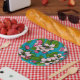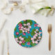 Glóbulos de maçã desenhados à mão e abelhas sobre o fundo de turquesa