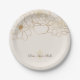 Estes simples pratos de casamento elegantes têm um fundo cor de champanhe claro com flores douradas e uma cruz de fé cristã simples com as palavras Love Never Fails. As palavras podem ser alteradas para cópia de sua escolha usando a ferramenta de personalização.