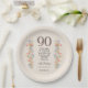 Flor Elegante, 90 Anos, Placas De Papel De Aniversário De 90 Floral. Comemore um aniversário de um marco em estilo com estas elegantes placas de papel de 80. Apresentando um delicado design floral de aquarela em ambos os lados do ousado "90", estas placas oferecem uma combinação perfeita de beleza e funcionalidade. Ideal para adicionar um toque de classe à sua festa enquanto servia aos seus convidados de uma forma memorável. Personalizáveis com o nome e a data do celebrante, esses pratos são perfeitos para qualquer festa de aniversário 90 com um tema floral inspirado na natureza.