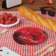 Prato De Papel Flor Rosa vermelha Brilhante Floral