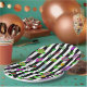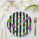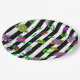 Placas de papel floral bonito com flores roxas, cor-de-rosa, azuis, lacas e amarelas com fundo listrado preto e branco. Bonito para casamentos, aniversários ou chás de fraldas.